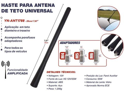 Antena Haste Universal com 3 Roscas/Encaixes M4/M5/M6